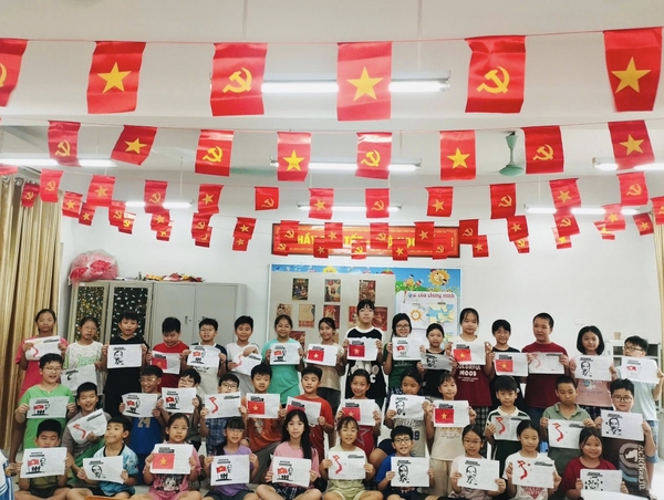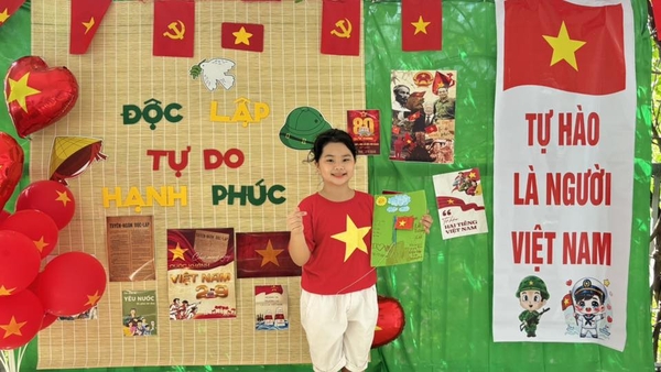 Các em học sinh trường Tiểu học Đông Ngạc (phường Đông Ngạc, TP Hà Nội) say mê vẽ tranh theo chủ đề Tổ quốc, khéo léo trang trí những chiếc nón xinh xắn với thông điệp yêu nước, cùng nhau treo cờ, làm đẹp lớp học. Đặc biệt, có lớp còn tỉ mỉ thực hiện mô hình xe tăng để tái hiện không khí hào hùng của lịch sử dân tộc. Tất cả đã hòa quyện tạo nên một bức tranh đầy sắc màu - vừa trang nghiêm, ý nghĩa, vừa vui tươi, gần gũi - để lại trong lòng các em nhiều trải nghiệm đáng nhớ.