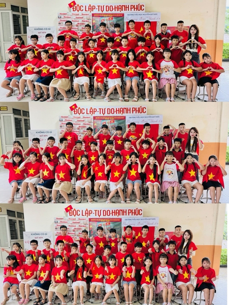 Trường Tiểu học Nguyễn Quý Đức (phường Đại Mỗ, TP Hà Nội): Thầy và trò nhà trường đã cùng nhau tổ chức nhiều hoạt động ý nghĩa, ghi lại những khoảnh khắc đẹp qua những bức ảnh rực rỡ cờ hoa.