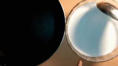 Bước 6: Vớt váng cốt dừa nổi trên bề mặt, cho vào xoong hoặc chảo, đun trên bếp khoảng 20 phút để tách riêng phần tinh dầu. Mẹ lưu ý để lửa nhỏ và thường xuyên đảo đều tay khẻo dầu bị cháy két. Đun đến khi dầu dừa trong, có mùi thơm là được.
