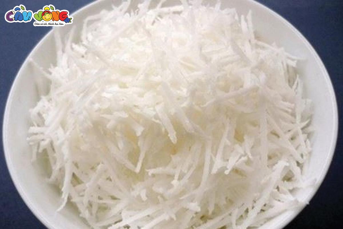 Bước 1: Nạo cùi dừa thành sợi hoặc cắt nhỏ