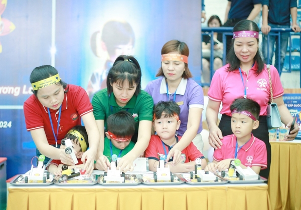 Từ 7h sáng thứ Bảy, 144 thí sinh mầm non thuộc 24 đội tuyển xuất sắc từ nhiều trường mầm non trên khắp các tỉnh trên cả nước như Sơn La, Hà Nội, Lào Cai, Nghệ An… đã quy tụ tại Chung kết Đấu trường Sunbot cấp Quốc gia 2024.