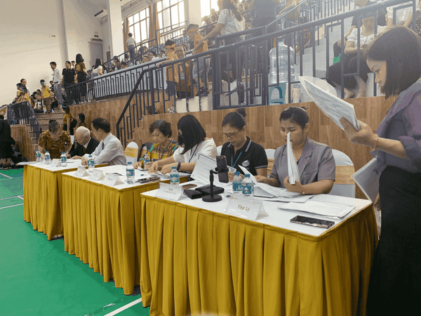 Các đại biểu đang chuẩn bị trước cuộc thi