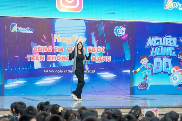 Sau tiết mục văn nghệ hâm nóng bầu không khí toàn trường, Cô Phạm Thị Trang và bạn Sóc Amiga dễ thương, nhanh trí đã có mặt để đồng cùng các bạn học sinh trường Đoàn Thị Điểm, Hà Nội tìm hiểu về các vấn đề rủi ro trên mạng xã hội, đồng thời trang bị thêm những kiến thức an toàn khi sử dụng các thiết bị điện tử (điện thoại, máy tính…), Internet và mạng xã hội thông qua các tình huống thực tế.