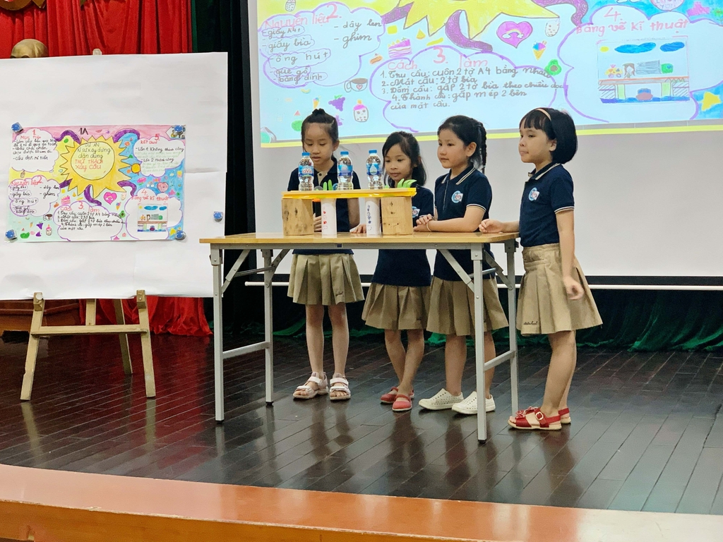 Với khối lớp 1 và 2, tuy tiếp cận với bộ môn Stem này từ khá sớm nhưng các bạn nhỏ cũng đem lại những kết quả vô cùng ấn tượng. Với sự sáng tạo non nớt của mình nhưng các học sinh cũng đã gặt hái được những thành công nhất định của mình trong quá trình thực hiện dự án Stem.