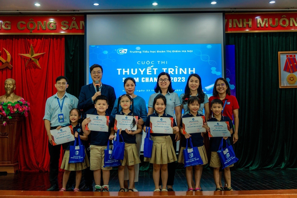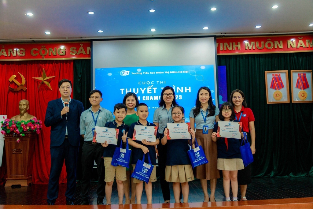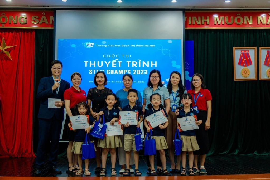 Ngày 24/5, trường Tiểu học Đoàn Thị Điểm - Hà Nội ( Phố Trần Văn Cẩn, Mỹ Đình 2, quận Nam Từ Liêm, Hà Nội) đã tổ chức vòng thi chung kết cuộc thi thuyết trình dự án Stem Champs cho các khối lớp 1, 2, 3 với mục đích tạo sân chơi bổ ích đến học sinh.