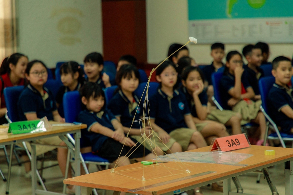 Khối lớp 3 thì lại có sự thử thách hơn so với 2 khối lớp còn lại với phần thi Marshmallow Challenge: Xây dựng Tháp mỳ Ý – Kẹo dẻo. Bằng những sợi mỳ Spaghetti, dây và băng dính, nhiệm vụ của học sinh khối 3 là thiết kế và xây dựng nên những tòa tháp mỳ để đưa viên kẹo dẻo lên cao nhất so với mặt bàn.