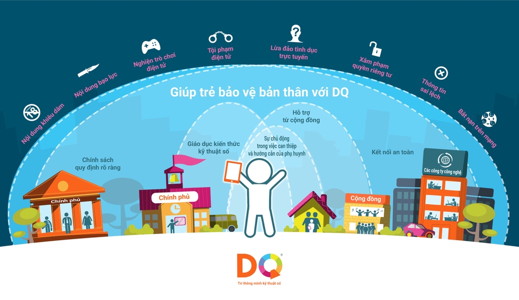 Theo báo cáo Tác động DQ (Impact Report 2018), Việt Nam có khoảng 68% trẻ em Việt Nam độ tuổi từ 8 đến 12 đang đối mặt với một hoặc nhiều hơn rủi ro không gian mạng như bắt nạt, nghiện game online, lừa đảo, thực hiện hành vi tình dục online khi sử dụng các nền tảng trực tuyến. Rủi ro không gian mạng phổ biến nhất là bắt nạt (60%), tiếp đó là các hành vi tình dục online (22%) và gặp gỡ những người lạ mặt trực tuyến (12%).