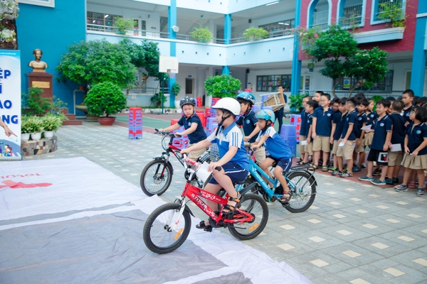 Các học sinh tham gia đều được trang bị mũ bảo hiểm để đảm bảo nguyên tắc an toàn khi tham gia giao thông. Với mỗi hoạt động, các bạn đã học hỏi thêm được nhiều kỹ năng xử lý tình huống tham gia giao thông an toàn.