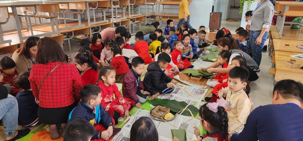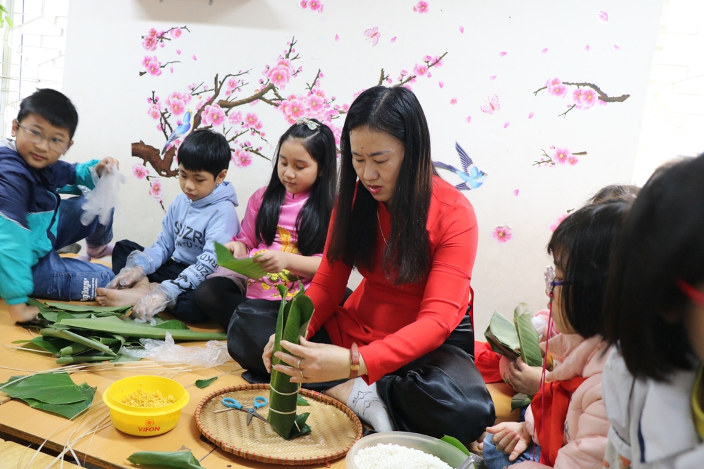 LỄ HỘI BÁNH CHƯNG RỘN RÃ Ở TIỂU HỌC XUÂN ĐỈNH: DẠY EM CÁCH YÊU TẾT CỔ TRUYỀN