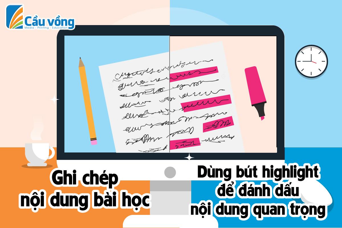Sau khi đã ghi chép nội dung quan trọng của bài giảng, các em có thể sử dụng bút highlight (bút nhớ) để đánh dấu những nội dung cần ghi nhớ. Đây là một cách rất hữu ích để các em học tất cả các nội dung chính, các ý chính được nhanh chóng và hiệu quả hơn đấy.
