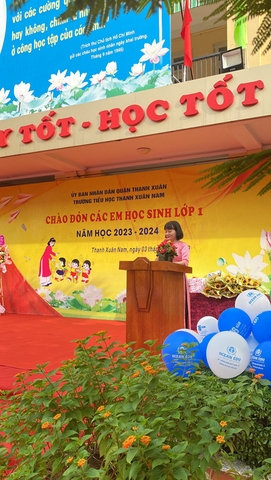 Lời chào và lời chúc đầy thân thương của cô giáo Nguyễn Lệ Hằng – Bí thư Chi bộ, Hiệu trưởng nhà trường gửi tới các con học sinh khối 1 như một lời hứa với toàn thể phụ huynh về năm học tới thật bổ ích và giàu năng lượng.