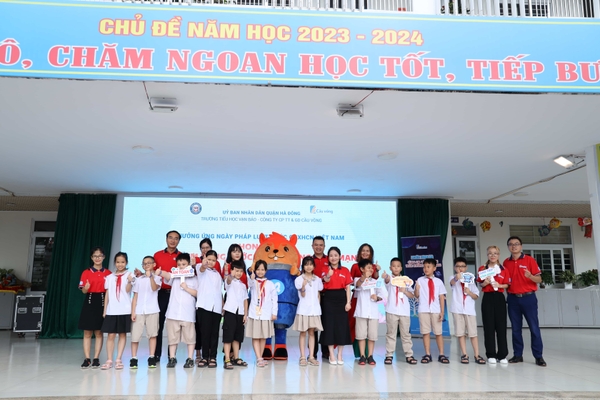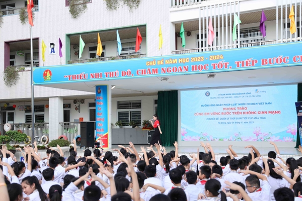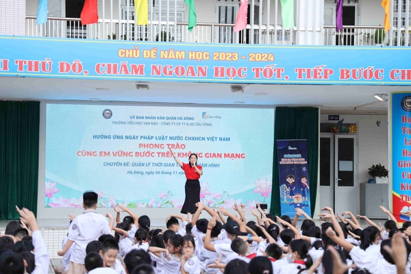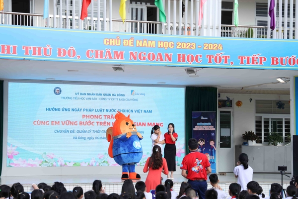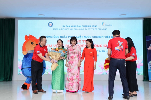 Trong bối cảnh mức độ sử dụng Internet và mạng xã hội ngày càng gia tăng, trẻ em đang phải đối mặt với rất nhiều rủi ro trên không gian mạng và việc bảo vệ an toàn cho trẻ trên mạng trở nên quan trọng hơn bao giờ hết. Vào ngày 6/11/2023, phong trào “CÙNG EM VỮNG BƯỚC TRÊN KHÔNG GIAN MẠNG” do Công ty CP Truyền thông và Giáo dục Cầu Vồng phát động đã diễn ra thành công tại trường Tiểu học Vạn Bảo ( Vạn Phúc, Hà Đông, Hà Nội) với sự tham gia của Ban lãnh đạo Nhà trường cùng toàn thể các em học sinh.