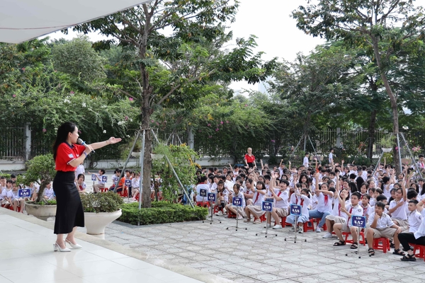 Tiếp nối chương trình, cô giáo Phạm Thị Trang – Chuyên gia giáo dục về Trí thông minh kỹ thuật số (DQ) đã có bài chia sẻ với các bạn học sinh về những rủi ro trong không gian mạng, cách thức cân bằng thời gian và an toàn hơn khi sử dụng thiết bị điện tử có màn hình.