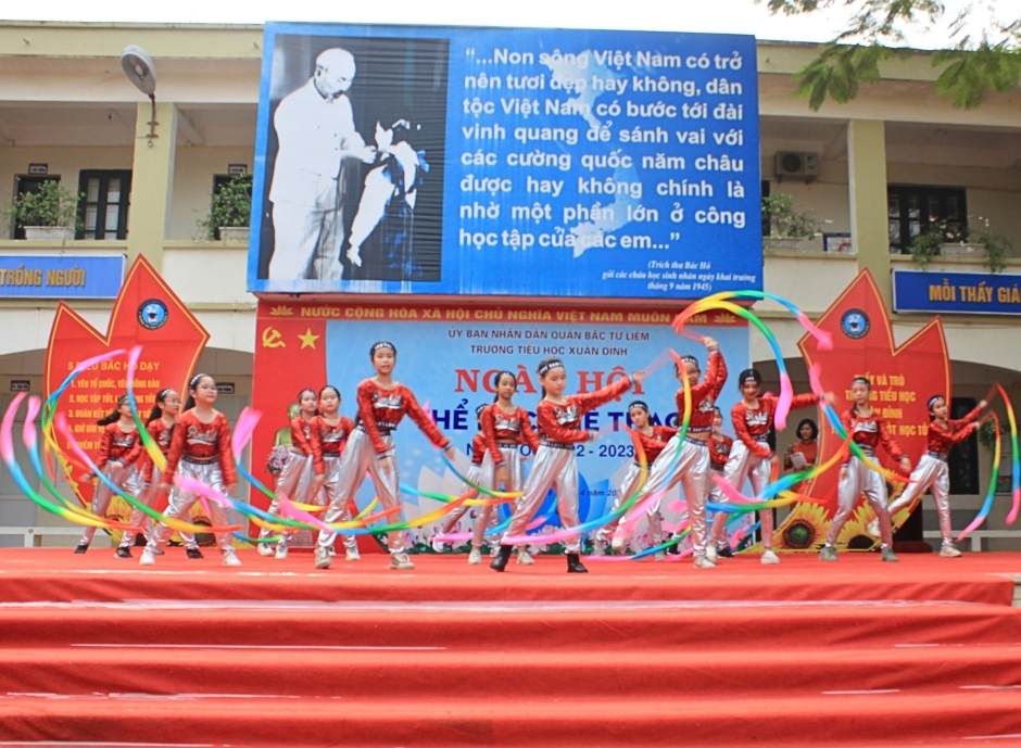 Góp phần làm sôi động không khí, trường TH Xuân Đỉnh cũng có những tiết mục văn nghệ đã được chuẩn bị một cách chỉn chu để chào mừng ngày lễ long trọng này.