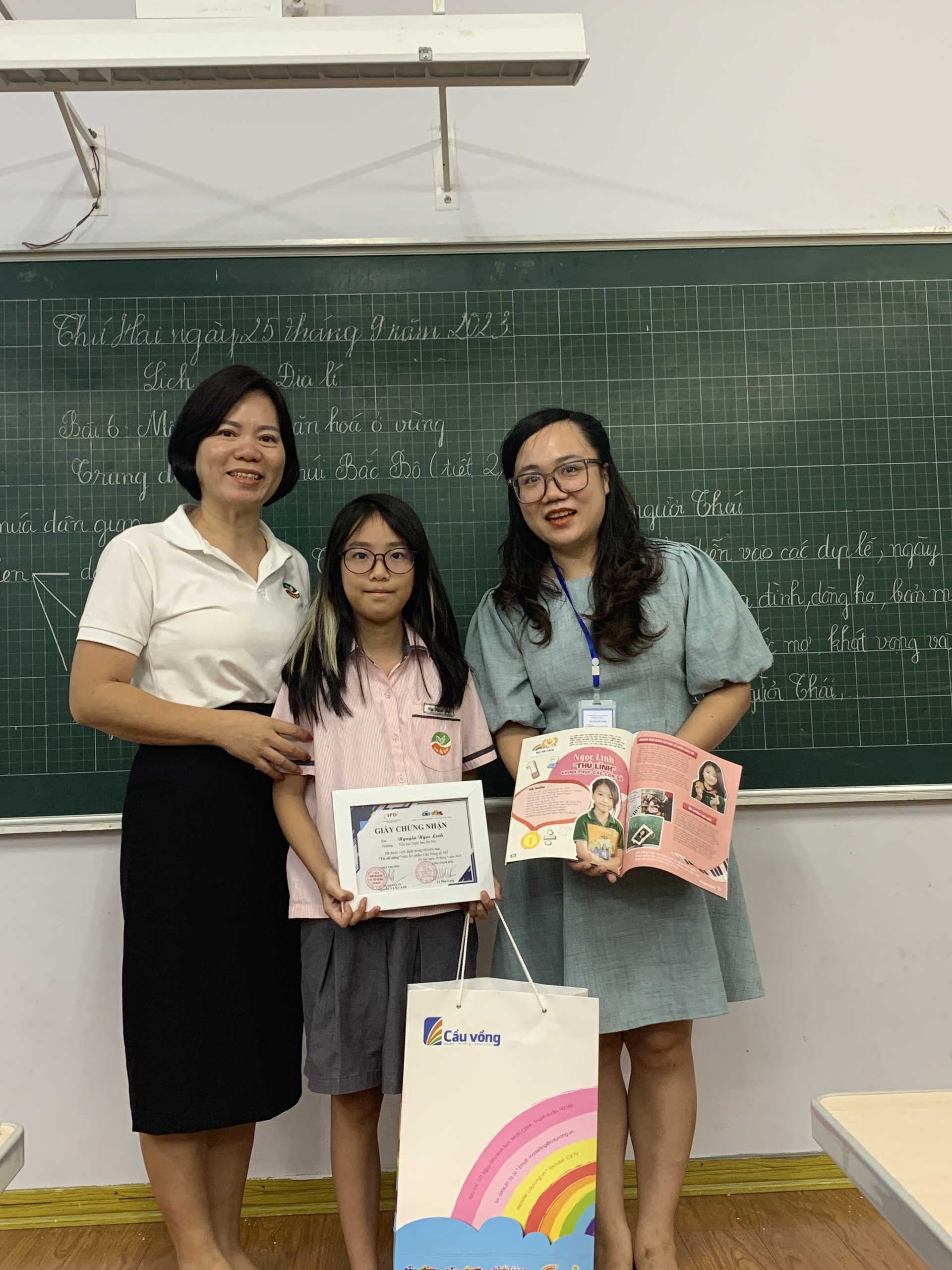 Ngọc Linh cùng cô giáo chủ nhiệm và TBBT Cầu Vồng