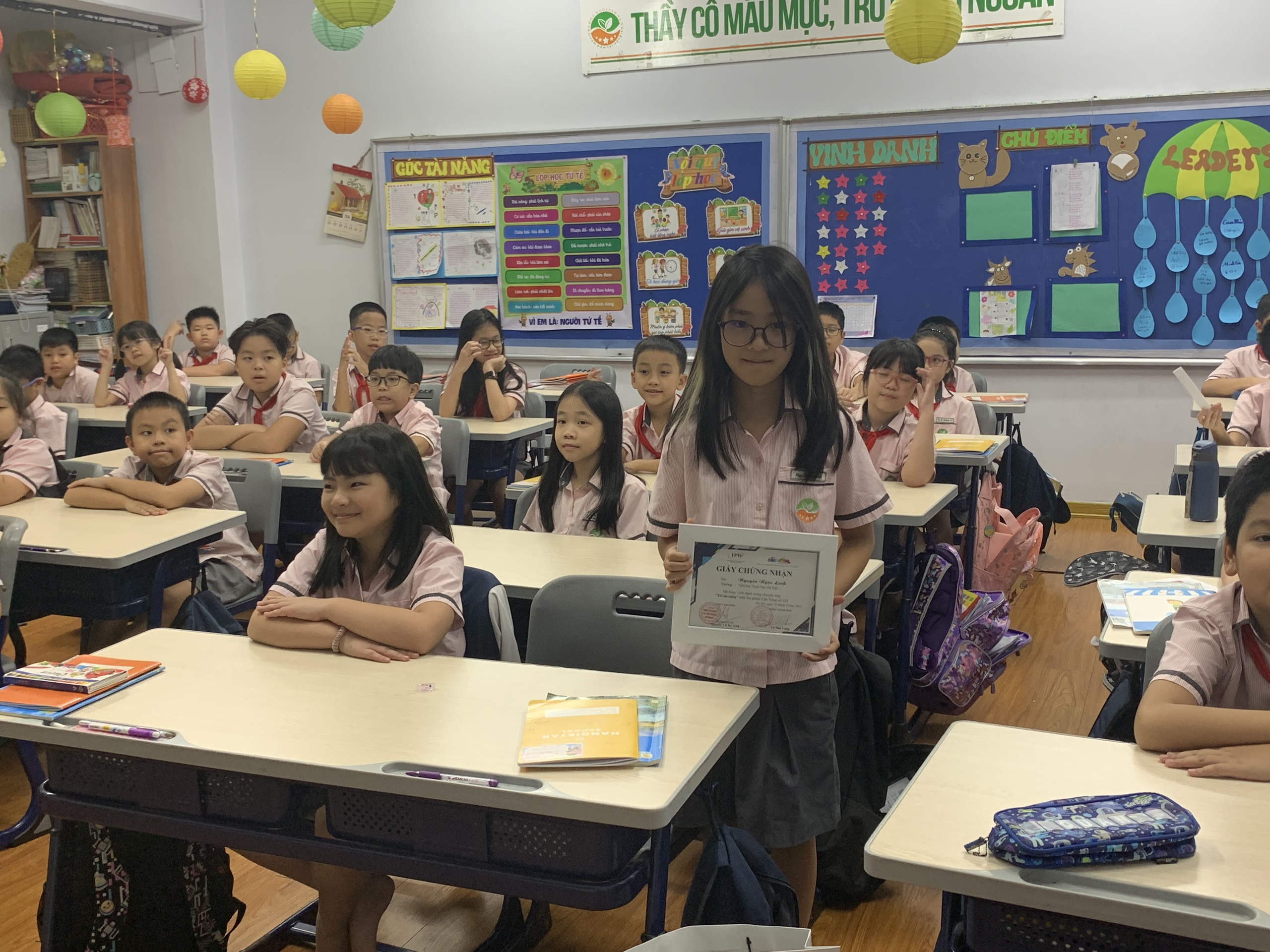 Ngày 25/9 vừa qua, Cầu Vồng đã tới trường TH Ngôi Sao Hà Nội để gặp gỡ bạn Nguyễn Ngọc Linh cùng cả lớp Chuyên Toán 4A0. Ban Biên tập đã trao phần thưởng và bằng khen vinh danh cho bạn Linh khi là một trong những tài năng nhí của chuyên mục "Tôi tài năng" trên Ấn phẩm Cầu Vồng số 103. Em đã đạt rất nhiều giải thưởng quốc tế Toán học và là niềm tự hào của bố mẹ cùng thầy cô lớp 4A0.