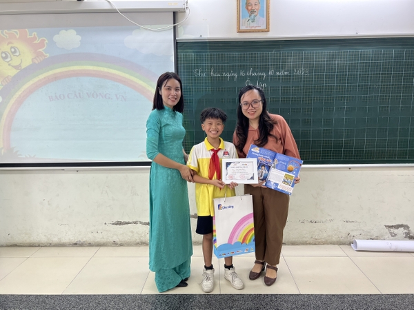 Tuấn Minh cùng cô giáo chủ nhiệm và TBBT Cầu Vồng