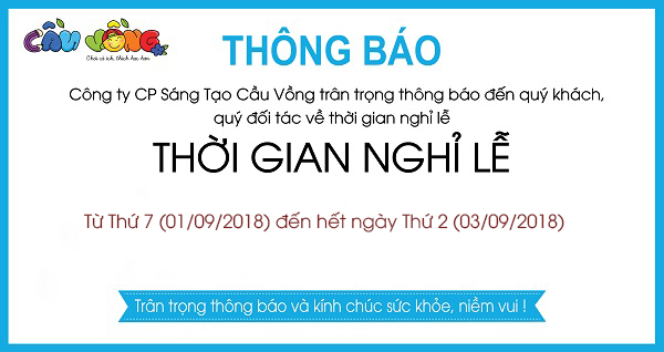 Đợt nghỉ lễ Quốc Khánh 02/09/2018 đang đến gần. Nhân dịp này Cầu Vồng xin phép được thông báo lịch nghỉ lễ như sau: