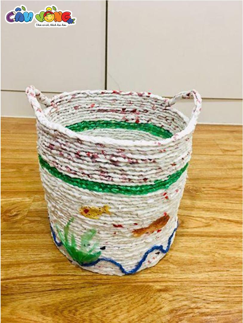 Với sự sáng tạo độc đáo và khéo léo của mình, Trâm Anh đã tạo ra những chiếc giỏ đựng đồ xinh xắn từ những chiếc túi nilong bỏ đi trong gia đình. Không những thế, em còn muốn lan tỏa lối sống xanh của mình tới các bạn học sinh trường Tiểu học Vinschool nói riêng và tất cả các bạn trẻ chúng ta nói chung bằng cách hướng dẫn mọi người cùng làm đồ tái chế.