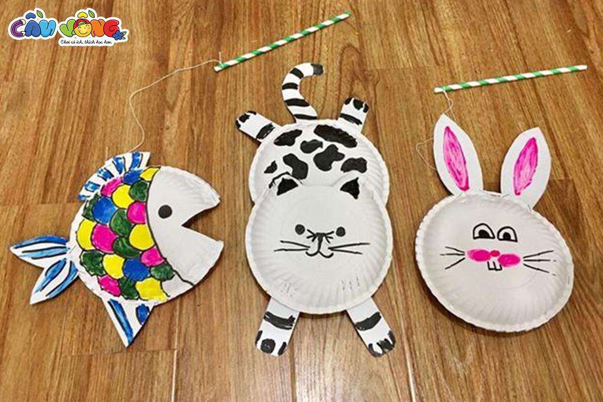 Đồ trang trí Trung thu làm bằng các đĩa nhựa dùng một lần