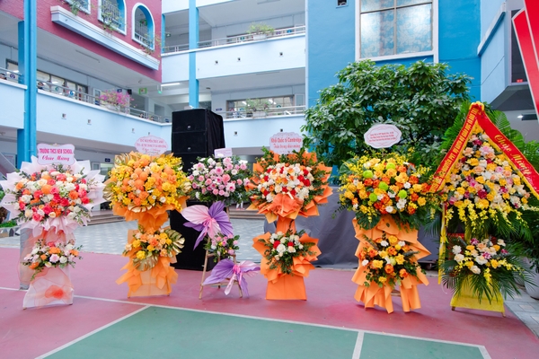 Buổi Lễ vinh dự đón nhận những lẵng hoa chúc mừng của Lãnh đạo Đảng, Nhà nước, Bộ Giáo dục và Đào tạo, Thành ủy Hà Nội và Văn phòng Chính phủ, cùng sự hiện diện của nhiều đồng chí lãnh đạo, nguyên lãnh đạo các cơ quan Trung ương, Bộ Giáo dục và Đào tạo, Thành phố Hà Nội, chính quyền địa phương; đại diện các tổ chức giáo dục, đơn vị đối tác, các cơ quan thông tấn báo chí Trung ương và Hà Nội