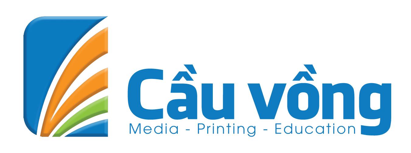 Phần bên cạnh là chữ CẦU VỒNG được gắn liền với biểu tượng thể hiện rõ hơn tên của doanh nghiệp. Kế bên dưới chữ CẦU VỒNG là các lĩnh vực chính của công ty hướng đến, đó là " Media- Printing- Education ".