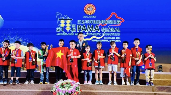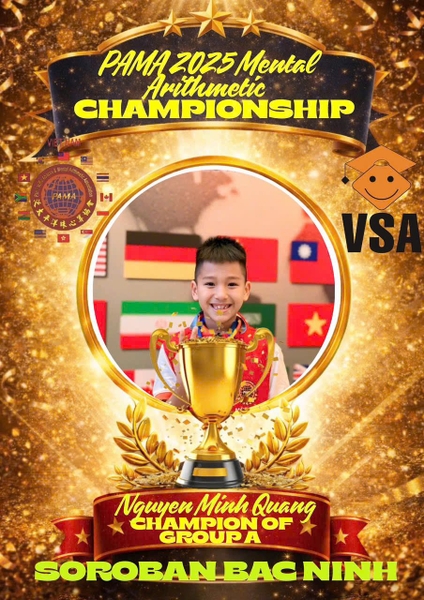 Vượt qua nhiều thí sinh xuất sắc đến từ các quốc gia, em Nguyễn Minh Quang đã chinh phục đỉnh cao tại Cuộc thi Toán Soroban Quốc tế PAMA lần thứ 23, tổ chức tại Malaysia năm 2025, và xuất sắc giành danh hiệu Vô địch. Đây không chỉ là một thành tích đáng tự hào của riêng em, mà còn là minh chứng sống động cho trí tuệ, bản lĩnh và sự kiên trì của học sinh Việt Nam trên hành trình hội nhập quốc tế.