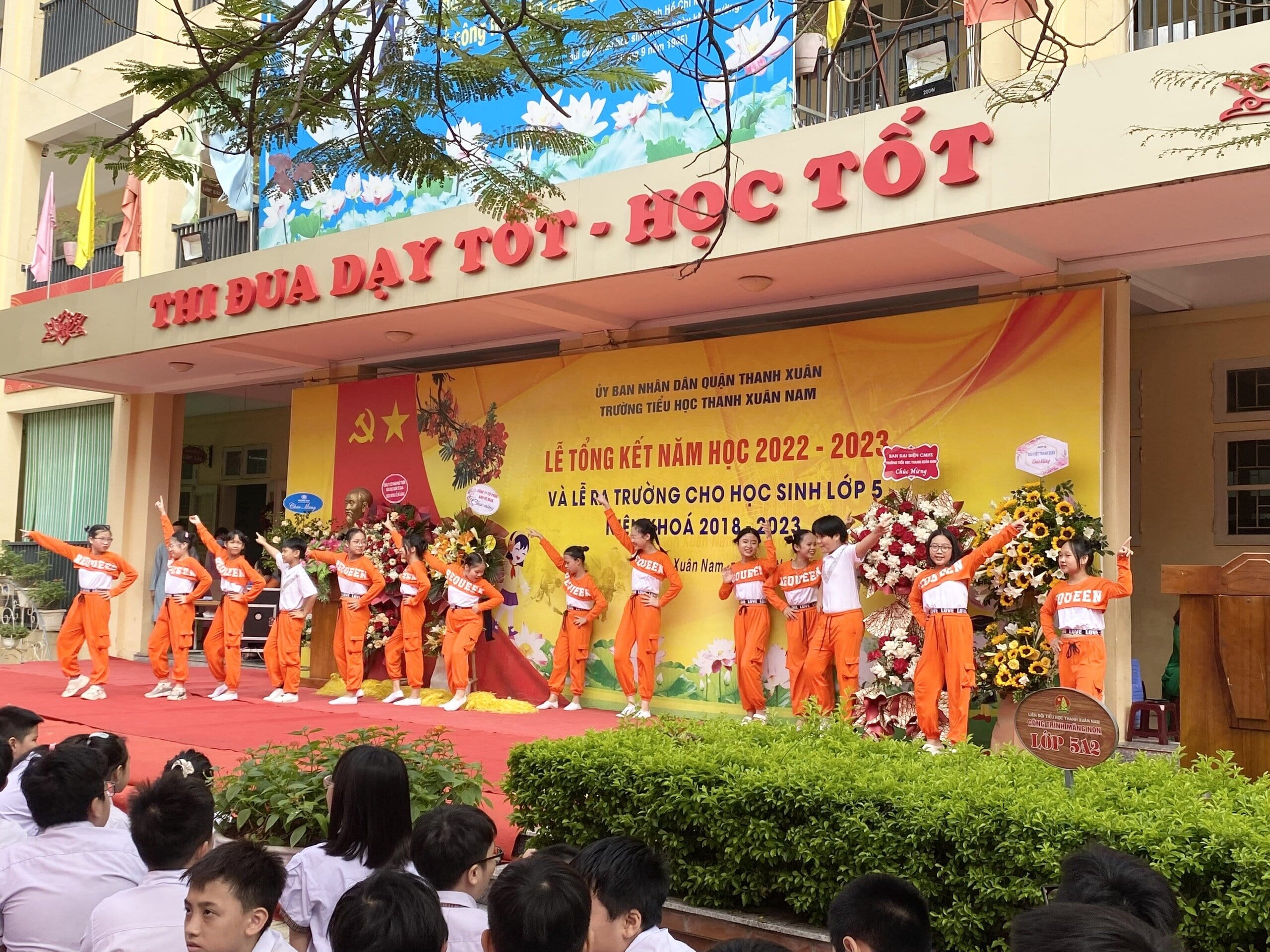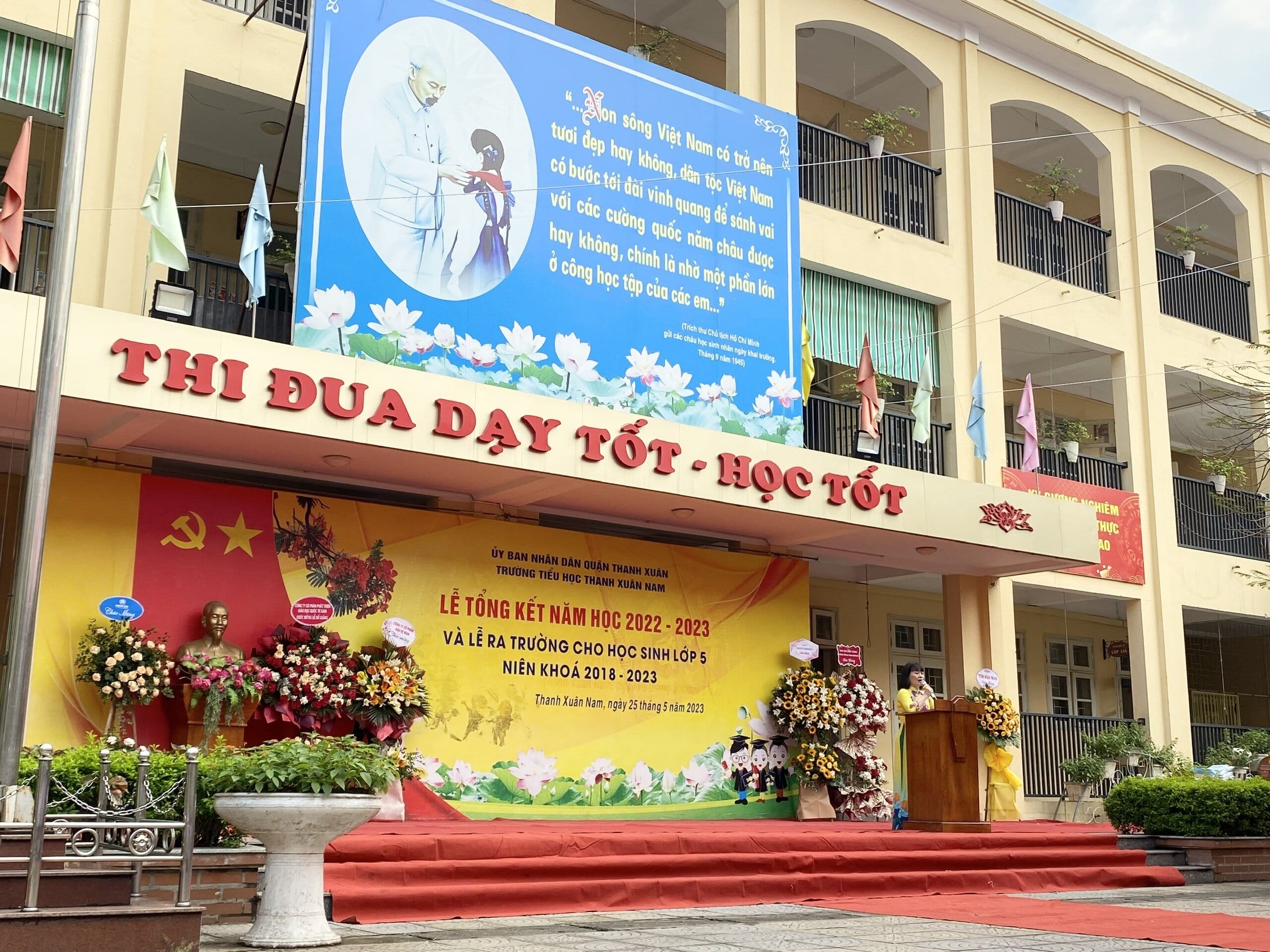 Cũng tại buổi lễ, trường Tiểu học Thanh Xuân Nam đã thực hiện nghi thức chia tay với 461 học sinh khối 5. Dưới sự dìu dắt của các thầy cô, các em đã hoàn thành tốt nhiệm vụ học tập và sẵn sàng tâm thế bước vào một giai đoạn mới, một bước ngoặt mới với nhiều mục tiêu mới. Những bó hoa tươi thắm, thay cho lời tri ân đã được các bạn học sinh cuối cấp dành tặng những người thầy, người cô tại mái trường tiểu học thân thương.