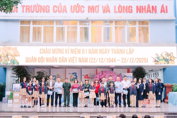 Sáng ngày 22/12, nhân dịp kỷ niệm 81 năm Ngày thành lập Quân đội nhân dân Việt Nam (22/12/1944 - 22/12/2025), Trường Tiểu học Đoàn Thị Điểm Hà Nội phối hợp cùng Câu lạc bộ Tuổi trẻ vì biển đảo quê hương tổ chức chương trình ý nghĩa “Yêu thương gửi đảo xa - Niềm tin nơi cánh sóng”, hướng về các cán bộ, chiến sĩ Hải quân và lực lượng biên phòng đang ngày đêm làm nhiệm vụ nơi tuyến đầu Tổ quốc.